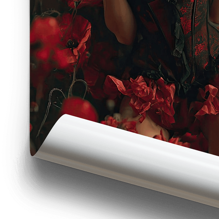 Bestelle dieses Blumen-Wandbild surreales Portrait Frau mit Mohnblumen von Egon Zitter als Reproduktion auf Leinwand, Alu-Dibond, als Poster, Fototapete oder Acrylglasbild.