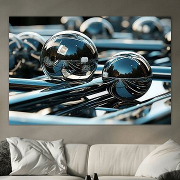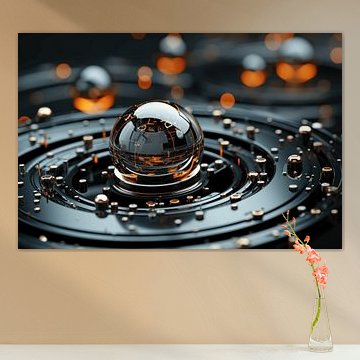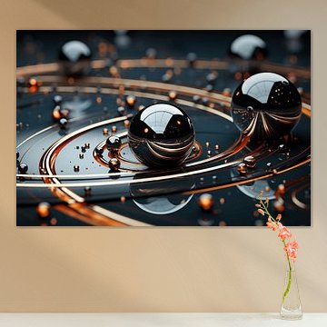 Abstract werk met glanzende bollen en ronde lijnen