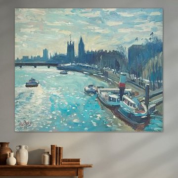 Dorps en stadsgezichten in olieverf, acryl en potlood.
