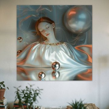 Mädchen mit roten Haaren in einer flüssigen Welt von Ton Kuijpers