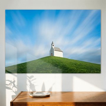 Kirche auf einem Hügel unter bewegten Wolken von iPics Photography