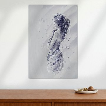Federzeichnung junge Frau koloriert mit Aquarellfarbe von Emiel de Lange