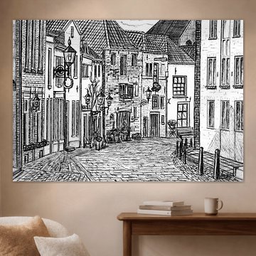 Zeichnung einer Straße im Zentrum von Deventer von Lonneke Kolkman