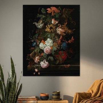 Ernst Stuven, Stillleben mit Blumen in Glasvase mit Schmetterling von Atelier Liesjes