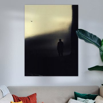 1. Dieses Bild zeigt eine stilisierte, illustrative Landschaft, die in warmen, erdigen Tönen gehalten ist. Das Design erinnert an die Ästhetik eines alten Reiseposters mit einem Hauch von Volkskunst-Einfluss. Es zeigt eine heitere Sonnenuntergangsszene, die von einem Bogen silhouettierter Bäume eingerahmt wird.  In der Mitte steht eine strahlende, goldene Sonne, die sanfte Strahlen aussendet, die eine Reihe von sanften Hügeln in gedämpften Grün- und Blautönen beleuchten. Flauschige Wolken, die in einem subtilen Farbverlauf umrissen sind, verleihen dem Himmel Tiefe und Textur. Unterhalb der Hügel bildet ein dichter Wald aus stilisierten Kiefern eine strukturierte Basis, die durch ein Band aus warmem, rötlich-braunem Grundton geerdet wird, der an Erde oder eine subtile Küstenlinie erinnert.  Die gesamte Szene ist von einem dunkelbraunen Rahmen umgeben, der wie ein stilisiertes Fenster oder ein Bogen geformt ist, mit der Silhouette weiterer Bäume am oberen Rand, was das Konzept des Rahmens im Rahmen verstärkt und ihm mehr Tiefe verleiht. Die Farbpalette erinnert an einen nostalgischen Herbst, mit Orangen, Gelb, Grün, Blau und Braun, die in einem gemütlichen, einladenden Ambiente harmonieren. Die Gesamtkomposition bietet ein Gleichgewicht zwischen Einfachheit und Detailreichtum und eignet sich daher für eine Vielzahl von Anwendungen, von Wandkunst bis hin zu Grußkarten oder Buchillustrationen. von Artistic