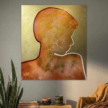 Dieses Bild zeigt eine stilisierte, illustrative Landschaft, die in warmen, erdigen Tönen gehalten ist. Das Design erinnert an die Ästhetik eines alten Reiseposters mit einem Hauch von Volkskunst-Einfluss. Es zeigt eine heitere Sonnenuntergangsszene, die von einem Bogen silhouettierter Bäume eingerahmt wird. In der Mitte steht eine strahlende, goldene Sonne, die sanfte Strahlen aussendet, die eine Reihe von sanften Hügeln in gedämpften Grün- und Blautönen beleuchten. Flauschige Wolken, die in einem subtilen Farbverlauf umrissen sind, verleihen dem Himmel Tiefe und Textur. Unterhalb der Hügel bildet ein dichter Wald aus stilisierten Kiefern eine strukturierte Basis, die durch ein Band aus warmem, rötlich-braunem Grundton geerdet wird, der an Erde oder eine subtile Küstenlinie erinnert. Die gesamte Szene ist von einem dunkelbraunen Rahmen umgeben, der wie ein stilisiertes Fenster oder ein Bogen geformt ist, mit der Silhouette weiterer Bäume am oberen Rand, was das Konzept des Rahmens im Rahmen verstärkt und ihm mehr Tiefe verleiht. Die Farbpalette erinnert an einen nostalgischen Herbst, mit Orangen, Gelb, Grün, Blau und Braun, die in einem gemütlichen, einladenden Ambiente harmonieren. Die Gesamtkomposition bietet ein Gleichgewicht zwischen Einfachheit und Detailreichtum und eignet sich daher für eine Vielzahl von Anwendungen, von Wandkunst bis hin zu Grußkarten oder Buchillustrationen. von Artistic