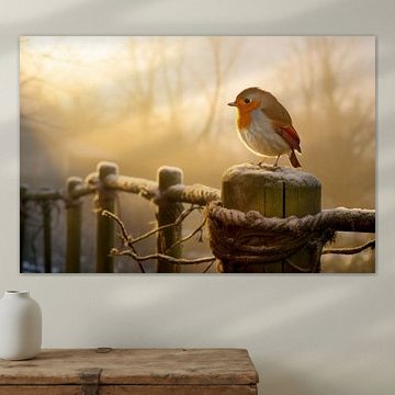 Rotkäppchen im verzauberten Wald mit Wolfssilhouette - Mystische und magische Wanddekoration von Elianne van Turennout