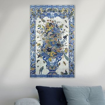 Fliesen-Tableau mit Blumenstillleben