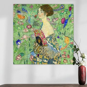 Dame mit Fächer, Gustav Klimt (grün, digital vergrößert)