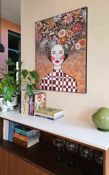 Du kannst unterschiedliche Stimmungen wunderbar miteinander kombinieren. Eine ruhige Buddha-Darstellung neben ausdrucksvollen Frauenporträts schafft eine spannende Balance an deiner Wand. Wichtig ist, dass die Farbtöne harmonieren - so wirkt deine Bilderwand trotz verschiedener Motive stimmig und nicht unruhig.