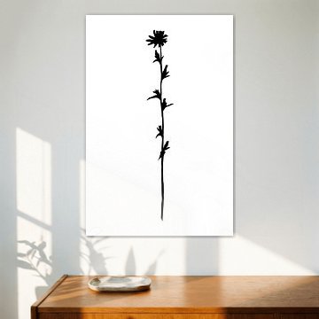 Botanische Grundlagen. Schwarz-weiß Zeichnung einer einfachen Blume. Zichorie Nr. 2 von Dina Dankers