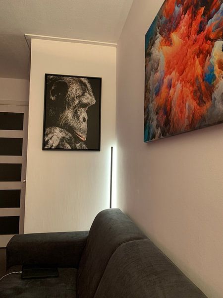 Bilder von Affen lassen sich wunderbar mit natürlichen Elementen kombinieren. Stelle grüne Zimmerpflanzen wie Monstera oder Farne neben deine Wanddeko - das verstärkt die organische Atmosphäre. Textile Kissen in Erdtönen oder geflochtene Körbe ergänzen die ruhige bis kraftvolle Ausstrahlung perfekt. Wenn du mehrere Motive nebeneinander hängst, entsteht eine spannende Galeriewand mit unterschiedlichen Stimmungen. Lass dich von der mysteriösen Kraft dieser besonderen Tiere inspirieren und gestalte einen Ort voller Charakter.