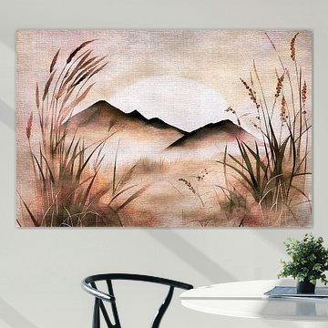 • Kundenfoto: Abstrakte Landschaftsmalerei - Warme Orange- und Brauntöne Kunstwerk von Wunderbare Kunst, als ArtFrame