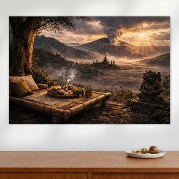 Vulkanlandschaften mit nebelverhangenen Tälern und gestaffelten Bergrücken bringen räumliche Tiefe an deine Wand - ideal für Räume, in denen du dich entspannen möchtest. Schlafzimmer, Leseecken oder ruhige Arbeitsbereiche profitieren von dieser beruhigenden Weite. Das Kunstwerk Blick auf den Vulkan Bromo zeigt diese Tiefenwirkung durch die Schichtung von Vordergrund, rauchenden Kratern und fernen Gipfeln besonders eindrucksvoll.