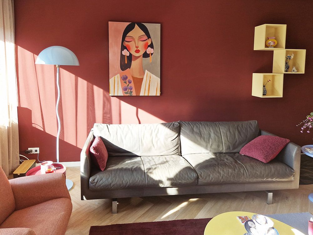 Wenn dein Raum viel Tageslicht bekommt, kannst du auch mutige Farben einsetzen - sie wirken dann lebendig, aber nicht erdrückend. Warme Orange- und Gelbtöne bringen zusätzliche Wärme in sonnendurchflutete Zimmer. Das zeigt sich gut in Blütenpanik, das mit seinen kräftigen Blütenfarben trotzdem leicht und frisch bleibt.