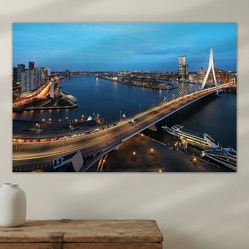 Die Stadt Rotterdam aus der Höhe mit der Erasmusbrücke und dem Rotterdammer im Hintergrund. von Jolanda Aalbers