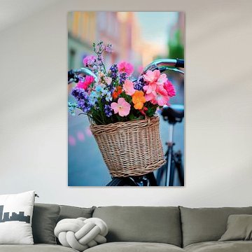 Blumen im Fahrradkorb bei Sonnenlicht von Poster Art Shop