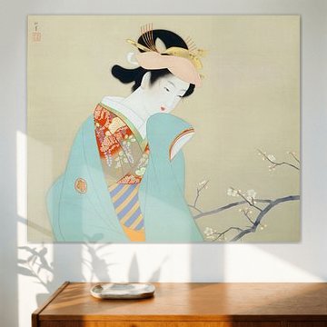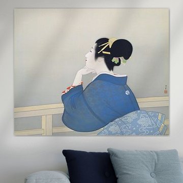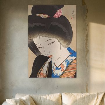 • Kundenfoto: Japanische Kunst Ukiyo-e. Retro-Holzschnitt einer jungen Frau im Kimono von Dina Dankers, als ArtFrame