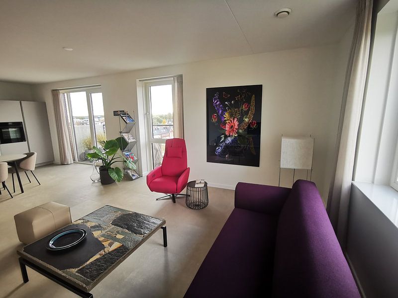 Kräftige Farben entfalten ihre volle Wirkung neben hellen Möbeln oder weißen Wänden. Die leuchtenden Blüten kommen so besonders gut zur Geltung. Ein gutes Beispiel dafür ist Royal Flora, dessen intensives Rosa und Rot vor neutralem Hintergrund richtig strahlt.