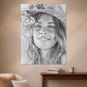 Schwarz-Weiß-Porträt eines fröhlichen Mädchens von PixelPrestige