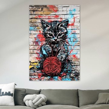 Graffiti-Katze mit Wollknäuel von Art & Soul Creations