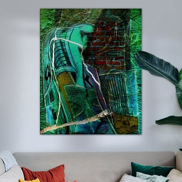 Ein Gesicht des bizarren Staunens, ein abstraktes Gesicht eingefroren im wild pulsierenden Rhythmus der Farbe, Triptychon(3 von 3) von AidasignArt