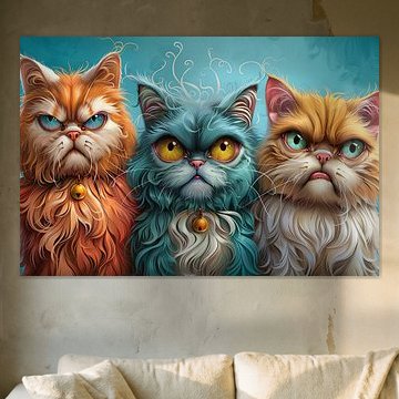 Fotokunst und Gemälde von Katzen für das Wohnzimmer bieten eine einzigartige Möglichkeit, die Liebe zu diesen eleganten Tieren zu zeigen und gleichzeitig eine gemütliche, einladende Atmosphäre zu schaffen. Von detaillierten Nahaufnahmen, die die verzaubernden Augen einer Katze einfangen, bis hin zu spielerischen Szenen von Katzen in ihren täglichen Abenteuern, bringt jedes Bild ein Stück der unabhängigen und geheimnisvollen Natur der Katzen ins Haus. Diese Kunstwerke, von realistischen Darstellungen bis zu abstrakten Interpretationen, bieten eine breite Palette an Stilen und Farben, die zu jeder Inneneinrichtung passen. Katzenkunst in Ihr Wohnzimmer zu integrieren, ist nicht nur eine Hommage an die Schönheit und Anmut dieser Tiere, sondern bereichert auch Ihren Wohnraum mit künstlerischem Flair und Persönlichkeit.
