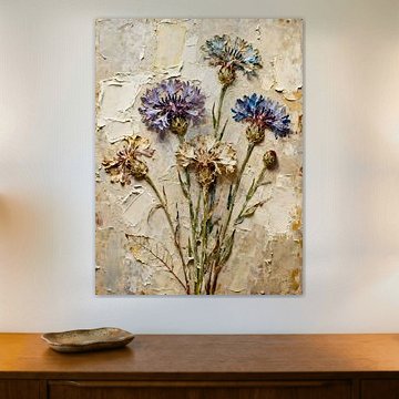 Blumenmotive entfalten ihre Wirkung besonders dort, wo Tageslicht hinfällt. Platziere Blaue Kornblumen am besten in der Nähe eines Fensters - die Blau- und Grüntöne wirken dort frisch und lebendig. Im Flur oder Eingangsbereich heißen solche Motive dich freundlich willkommen.