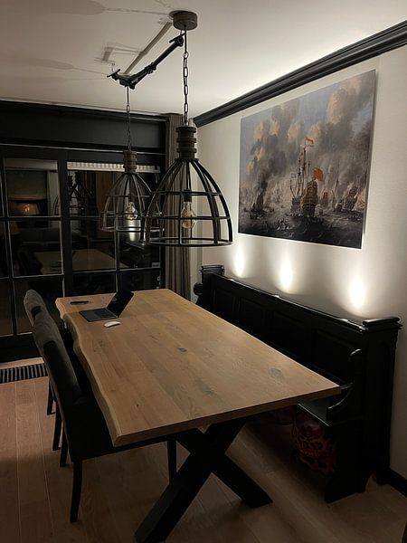 Blau und Grau sind die häufigsten Farben in dieser Kollektion - sie lassen sich gut mit warmen Holztönen oder hellen Textilien kombinieren. Die Grau- und Blaunuancen in VOC-Gemälde: Die Kanonenschuss, Willem van de Velde (II), um 1680 harmonieren mit natürlichen Materialien wie Leinen oder Rattan und schaffen so eine ausgewogene Raumatmosphäre.