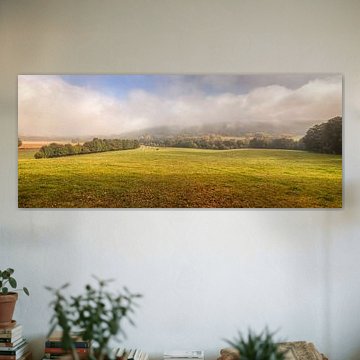 In dieser Kollektion dominiert das Querformat - ideal, um die weiten Landschaften und sanften Hügel Limburgs zur Geltung zu bringen. Ein breites Querformat passt gut über das Sideboard, die Couch oder entlang einer langen Flurwand. Es lenkt den Blick in die Breite und lässt den Raum großzügiger wirken. Wenn du weniger Platz hast oder eine vertikale Wandfläche betonen möchtest, kannst du auch zum Hochformat greifen - das funktioniert besonders gut neben Türrahmen oder in schmalen Nischen.