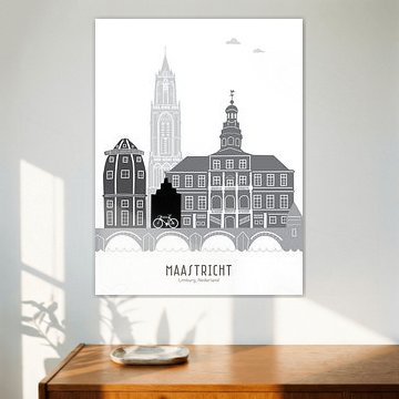 Skyline-Illustration Stadt Maastricht schwarz-weiß-grau von Mevrouw Emmer