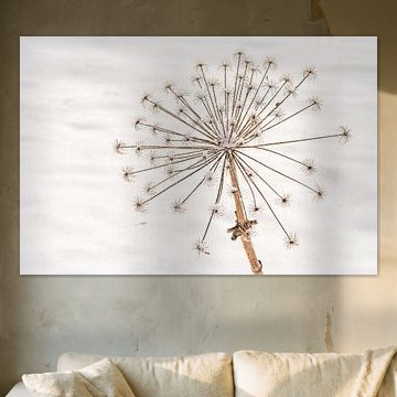 Natürliches Stillleben eines vertrockneten Bärenklaus im Schnee von Mayra Fotografie