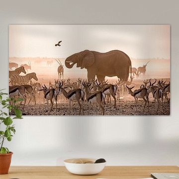 Erleben Sie die raue Schönheit und die fesselnde Wildnis Namibias durch unsere Kunstsammlung. Diese Werke bringen die beeindruckenden Dünen der Namib-Wüste, die Skeleton Coast und die reiche Biodiversität des Etosha-Nationalparks zum Leben. Ideal für Kunstliebhaber, Innenarchitekten und Reisende, die den abenteuerlichen Geist Namibias einfangen möchten. Lassen Sie sich von den Kontrasten und Farben dieses atemberaubenden Landes überraschen. Fügen Sie Ihrem Interieur einen Hauch namibischer Pracht hinzu mit diesen einzigartigen Kunstwerken.