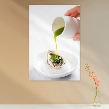 • Kundenfoto: Austern auf orangefarbenem Tischtuch von studio snik., als ArtFrame