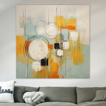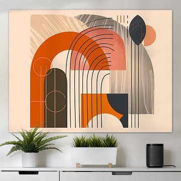 Abstrakte Bauhaus Formen auf Leinen in Erdfarben von FRESH Fine Art