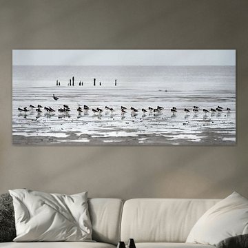 Ein Schwarm Austernfischer am Strand bei Paesens/Moddergat von Anges van der Logt