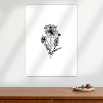 Poster Violett - Feine Strichzeichnung - Blume - Schwarz und weiß von Studio Tosca