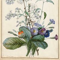 Blumenstillleben mit Vogelnest und Buchfink, Cornelis van Spaendonck