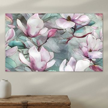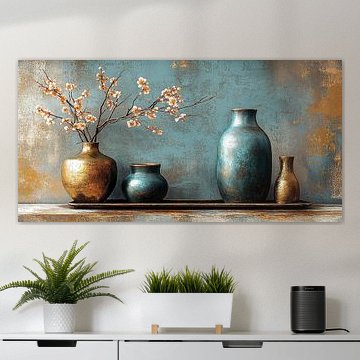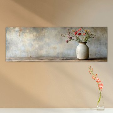 Japanische Vase mit Wildblumen auf Holztisch von Digitale Schilderijen