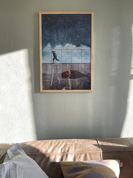Die Kollektion Wale & Delfine passt gut ins Arbeitszimmer, weil sie ruhige und zugleich kraftvolle Akzente setzt. Die Motive in Blau- und Grautönen schaffen eine konzentrierte Atmosphäre, ohne abzulenken. Hänge ein großformatiges Werk hinter deinem Schreibtisch oder an der Wand gegenüber - so hast du während Videocalls einen beeindruckenden Hintergrund. Kombiniere das Kunstwerk mit natürlichen Materialien wie Holz oder hellem Metall, um die maritime Stimmung zu unterstreichen.