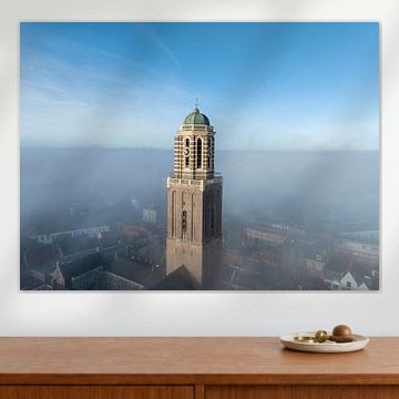 Peperbus-Kirchturm in Zwolle über dem Nebel von Sjoerd van der Wal Fotografie